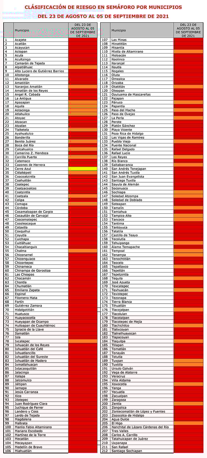La Secretaría de Salud del Gobierno federal confirmó que Veracruz seguirá en semáforo epidemiológico naranja durante el regreso a clases presenciales, a menos que las autoridades tomen otra determinación ante el retorno programado para el 30 de agosto.