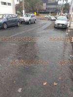CMAS Xalapa efectuó obra en calle Rafael Ramírez y a unos metros dejó fuga de agua