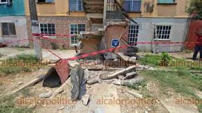 Una tercera escalera de los edificios del fraccionamiento Puerto Esmeralda colapsó este miércoles por el mal estado de la infraestructura. El incidente se presentó en el inmueble F en la calle Pez Ángel del lado poniente de la colonia de Coatzacoalcos.