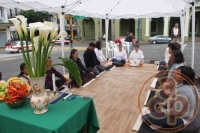 Debajo de una carpa los integrantes en su mayoría vestidos de blanco realizaron la meditación. Tenían un altar con velas, así como una canasta con frutas.