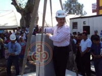 Hoy fue colocada la primera piedra de la obra de las naves en la zona de frutas y verduras del mercado “San Juan de los Cerritos”;no fue licitada aunque la inversión fue mayor a 7 millones de pesos.