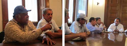 Dirigentes obreros y pensionados se entrevistaron con representantes de la Subsecretaría de Gobierno y la Dirección General de Política Regional para demandar la intervención y desarmar y retirar del ingenio al grupo de golpeadores de Mario Hernández, quienes –subrayaron los denunciantes- son gente de Oaxaca que visten playeras y gorras rojas con logos del PRI y de Javier Duarte: “Mario Hernández ostenta que están por parte del señor gobernador Javier Duarte, que él los está apoyando, que obedece órdenes del gobernador, cosa que nosotros no creemos, no creemos que detrás de esto está el gobernador”.