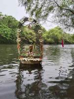 A las 2 de la tarde con música de banda, inicia la procesión con la imagen del santo a cuestas, la cual recorre las principales calles del lugar para terminar en el río, donde será embarcado para que haga el tradicional paseo en la zona de “La Playita”, para cruzar el río sobre una balsa, adornada cada año más original que el anterior, con detalles artesanales que la engalanan.