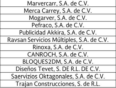 En ese sentido, el Servicio de Administración Tributaria informó que el 24 de mayo de 2016 fueron referidas 21 empresas y cuatro dependencias de la administración estatal.