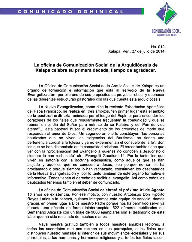 Comunicación Social de Arquidiócesis de Xalapa celebra su primera década