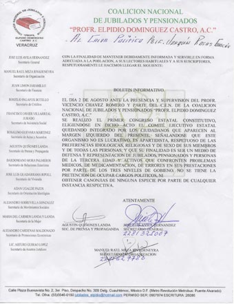 Comunican elección de directiva de la Coalición Nacional de Jubilados y Pensionados