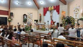 Bajo pertinaz llovizna y en una veintena de lanchas, feligreses católicos participaron este jueves en una procesión en honor a San Pedro y San Pablo sobre el río Tuxpan, para enfilar hacia las escolleras y concluir en la Laguna de La Mata de Tampamachoco.