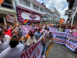 El presidente electo de Poza Rica por el partido Movimiento Ciudadano (MC) Emilio Olvera, acompañado de simpatizantes, se manifestó este viernes frente al Palacio de Gobierno para acusar al delegado del Bienestar Juan Javier Gómez Cazarín de amenazar al Tribunal Electoral de Veracruz (TEV) para manipular paquetes electorales y robar la elección a favor de Movimiento Regeneración Nacional (MORENA) por orden de la gobernadora Rocío Nahle.