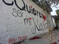 Obtuvo el permiso de un particular para pintar una barda; seis horas después de arduo trabajo dejó el mensaje más importante listo, para que el 1° de febrero, su amada respondiera a su cariño, “¿Quieres ser mi novia?”…