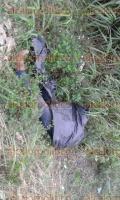 La dama tenía la cabeza y parte de su cuerpo dentro de una bolsa negra, entre las hierbas solo alcanzaba a verse parte de su pantalón de mezclilla y unas botas de color café.
