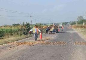 Con cáscara de coco revuelta con tierra y cascajo, habitantes de este municipio han tenido que improvisar labores de bacheo en la carretera que conecta a El Higo desde la zona conocida como “Y”, en el entronque con la vía federal Alazán-Canoas.
