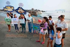 Se reunieron en la playa La Bamba de Boca del Río, para realizar actividades en el mar y en tierra para hacer conciencia entre los veracruzanos de la implicación que dejará la construcción de una escollera de más de tres kilómetros en esta zona.