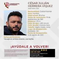 César Julián Herrera Víquez, cineasta de profesión, fue detenido en agosto pasado en Coatepec; inicialmente se indicó que estaba en calidad de desaparecido y la Comisión Estatal de Búsqueda boletinó su rostro y datos para localizarlo.