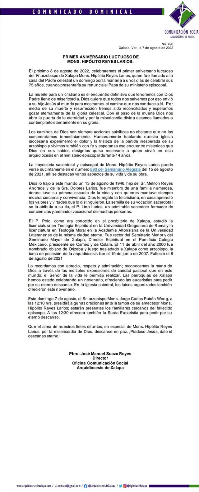 - Este domingo, la Arquidiócesis de Xalapa presidirá oraciones ante su tumba