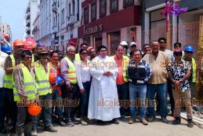 Este viernes 3 de mayo, los trabajadores dedicados a la obra de rehabilitación en el Centro Histórico de Veracruz conmemoraron el Día de la Santa Cruz con un acto religioso. La celebración tuvo lugar específicamente en el tramo que comprende de la calle Mario Molina a Rayón.