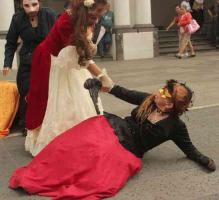 Para animar al público a que participe en las actividades del Tercer Festival de Teatro Coatepec 2025, los organizadores llevaron a cabo un desfile que recorrió las calles del Centro Histórico de la cafetalera ciudad sede.