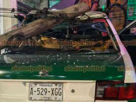 Un aparatoso accidente registrado durante la madrugada de este lunes dejó severos daños materiales sobre la avenida Lázaro Cárdenas, en la Capital veracruzana, luego de que un taxi terminara impactándose contra una parada de autobús, un poste de telecomunicaciones y parte de la estructura metálica de un motel. El conductor abandonó la unidad y escapó.