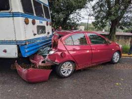 Un aparatoso accidente ocurrió la mañana de este martes sobre el bulevar Xalapa-Banderilla, el conductor de un vehículo Chevrolet Aveo perdió el control y se impactó contra un autobús, se derogaron dos personas con lesiones leves.