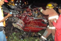 Esta lamentable accidente se registró alrededor de las 10:15 horas de la noche, sobre la carretera que comunica a Santiago Tuxtla con Cd. Isla, a la altura del lugar conocido como “Palo Gacho”, por la comunidad de Cruz de Vidaña, en donde el comerciante de nieves de nombre Santos Beltrán Málaga, de 32 años de edad, quien era originario de la comunidad de Chilipilinga perteneciente al municipio de Santiago Tuxtla, impactara de frente una camioneta Chevrolet, modelo 94, color roja, con placas de circulación YFH-2051 del estado de Veracruz, contra un autobús de pasajeros con número económico 2332 de la línea Tepango, esto debido a que al parecer el hoy occiso conducía a exceso de velocidad y en estado de ebriedad invadiendo el carril contrario, quedando atrapado el conductor de la camioneta entre los fierros retorcidos con el cuerpo destrozado de la parte de tórax hacia la cabeza.