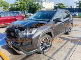 El accidente ocurrió en la sucursal ubicada en la intersección de las calles Benito Juárez y Hermenegildo Galeana. El vehículo involucrado fue una camioneta Toyota RAV4, color gris, con placas YGJ-144-A del estado de Veracruz.