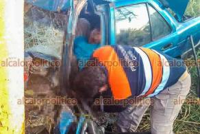 El conductor de un automóvil quedó prensado tras siniestrarse esta mañana en la carretera Costera del Golfo, a la altura de la localidad de La Laguna, municipio de Medellín de Bravo, cuerpos de emergencia y auxilio acudieron a su rescate.