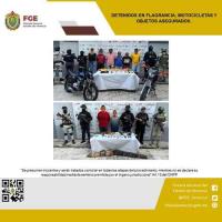 El dicho operativo se logró la detención en flagrancia de Jesús Adat “N”, Alejandro “N”, Omar “N”, Ahilin Yesenia “N”, Michell “N”, José Carlos “N” y una adolescente con identidad resguardada. Así como el aseguramiento de motocicletas, trituradoras, pipas, una identificación, celulares, hierba verde seca con características similares a las de la marihuana, básculas grameras y una laptop.