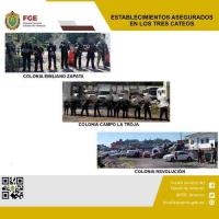El primer cateo se llevó a cabo en la colonia Emiliano Zapata, en atención a una denuncia ciudadana, donde se aseguró el inmueble por presuntas irregularidades constitutivas de delito en su funcionamiento. El segundo operativo se realizó en la colonia Campo la Troja, donde también se aseguró el lugar debido a presuntas irregularidades constitutivas de delito en su operación.