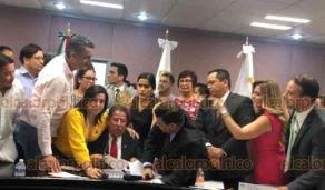 La lectura del punto de acuerdo por parte del diputado local, Alexis Sánchez García, generó un zafarrancho entre los diputados de MORENA y los integrantes de la fracción panista, ante la pasividad de los diputados de otros grupos legislativos.
