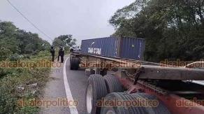 La tarde de este viernes, un contenedor se desprendió de un tráiler y quedó atravesado sobre la carretera federal 140 Xalapa-Perote, a la altura de la curva previa a la entrada al municipio de Rafael Lucio, lo que provocó severas afectaciones a la circulación vehicular.