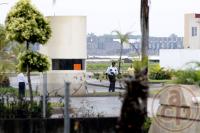 Personal de seguridad privada ubicada en la entrada de las casas mantiene restringido el acceso al área de edificación.