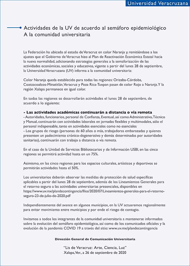 Continuará UV con actividades académicas a distancia