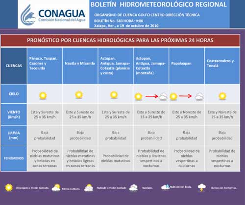 El frente frío se moverá hacia el Noreste del Golfo de México, por lo que no traería repercusiones mayores para la región. El disturbio tropical del Caribe podría evolucionar a una depresión tropical en los próximos días, pero su tendencia es a moverse en las inmediaciones de las costas de Honduras y Nicaragua para posiblemente cruzar Centroamérica rumbo hacia el océano Pacífico durante el fin de semana. Se mantendrá en vigilancia.