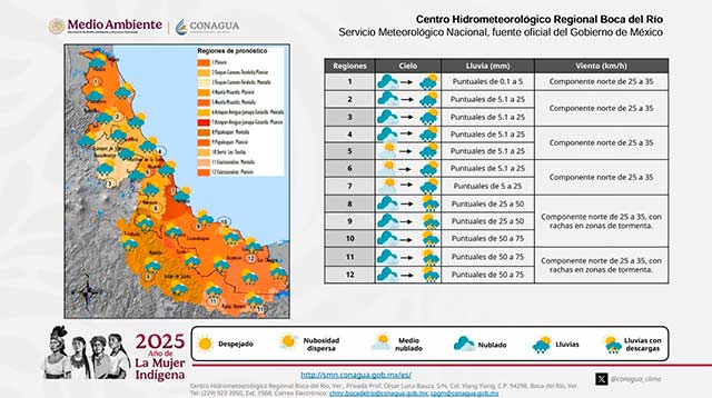 Se prevé la continuidad del temporal lluvioso durante los siguientes días en el estado de Veracruz, con los mayores acumulados en cuencas del sur. Derivado de este pronóstico, se mantiene vigente el Aviso Especial. El equipo de la Subdirección de Estudios y Pronósticos Meteorológicos les deseamos excelente Nochebuena y Feliz Navidad.