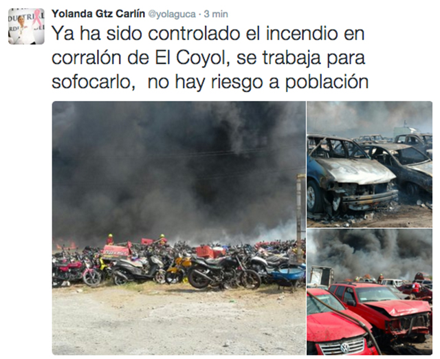 Luego de varias horas de combatir el incendio que se presentó la tarde de este miércoles en el corralón Grúas y Maniobras, ubicado en la calle Eje 1 Poniente entre Mongle y Encino de la colonia el Coyol, en el puerto de Veracruz, quedó controlado y sofocado en su totalidad, informó la Secretaría de Protección Civil.