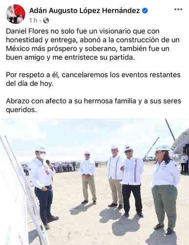 Autoridades confirmaron que uno de los 3 tripulantes que murieron en trágico accidente aéreo la noche de este viernes es Daniel Flores, coordinador de Difusión del ex secretario de Gobernación, Adán Augusto López, quien el día de ayer realizaba una gira por la zona de Córdoba en busca de encabezar los comités de defensa de la Cuarta Transformación.