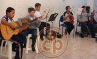 Pero también, crearon una pequeña orquesta donde 20 niños tocan diferentes instrumentos, como guitarra, flauta, violín entre otros.