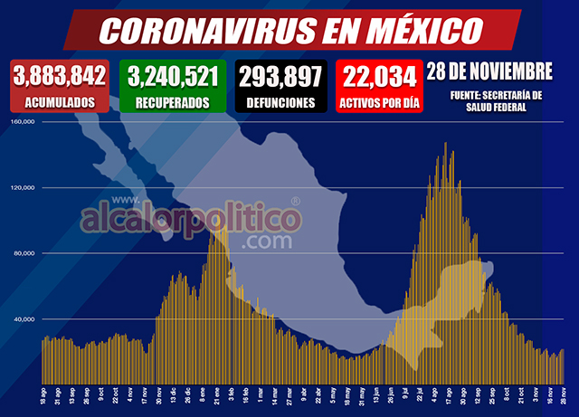 Esto domingo, la Secretaría de Salud federal reportó mil 50 nuevos casos de COVID en México y 38 muertes por el virus.