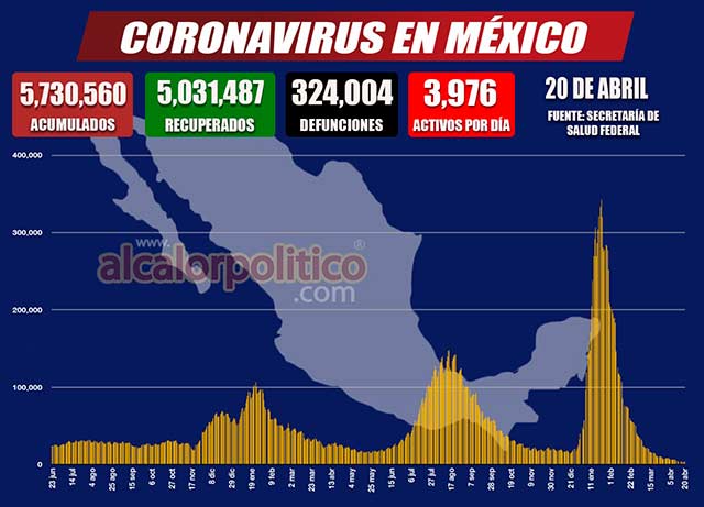 México registra ligero repunte de casos este miércoles, con mil 290 nuevos contagios y 31 muertes. Suman 5 millones 730 mil 560 casos acumulados y 324 mil 004 defunciones.