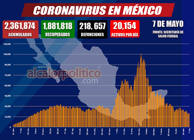 México sumó 484 nuevas muertes por la COVID-19 en las últimas 24 horas para llegar a un total de 218 mil 657 decesos, informó este viernes la Secretaría de Salud.