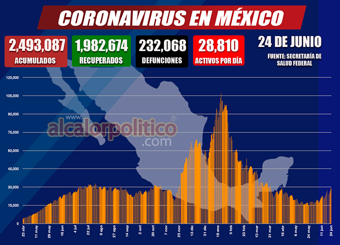 La Secretaría de Salud informó que, al corte de este jueves 24 de junio, México sumó un total de 232 mil 68 muertes por Covid-19.