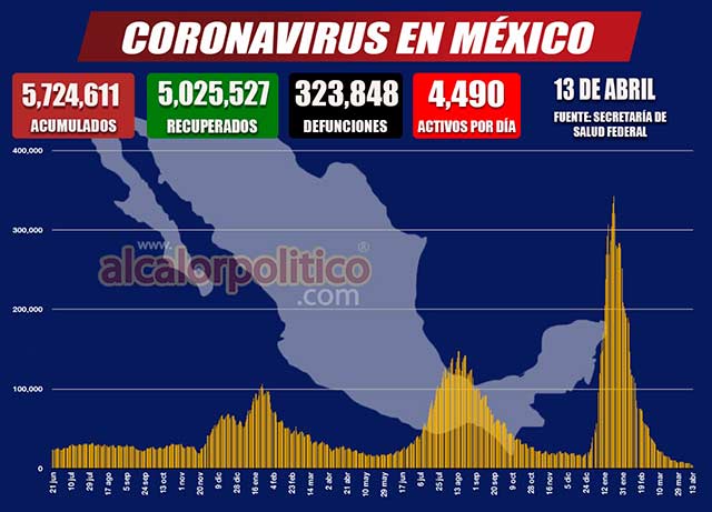 La Secretaría de Salud federal reportó este miércoles 749 nuevos contagios de COVID-19 y 43 muertes. Desde el inicio de la pandemia suman 5 millones 724 mil 611 de casos positivos.