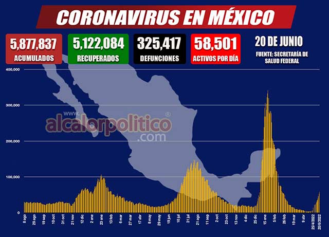 - Se acumulan 5 millones 877 mil 837 de contagios y 325 mil 417 defunciones