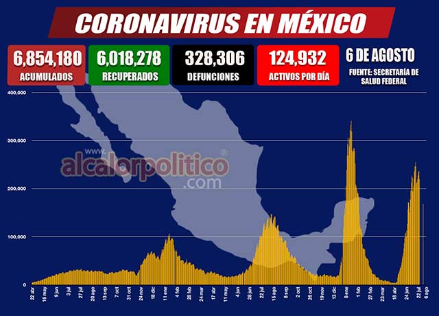 Este sábado, la Secretaria de Salud federal reportó 14 mil 448 nuevos contagios de COVID-19 y 85 defunciones por el virus.