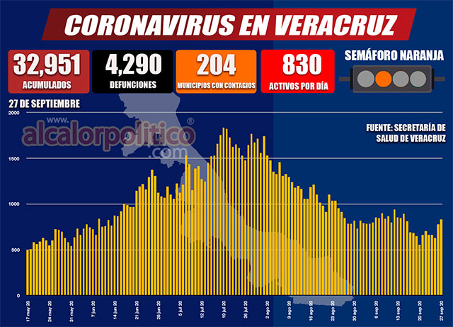 En total, se acumulan 32 mil 951 casos positivos y 4 mil 290 muertes desde el inicio de la pandemia