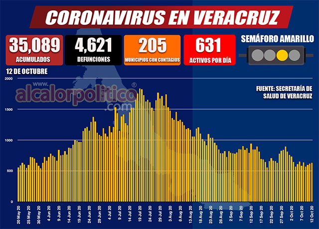 Con lo cual, los fallecimientos acumulados desde el inicio de la pandemia se ubican en 4 mil 621 en 172 municipios; mientras que los contagios llegan a los 35 mil 89 en diferentes localidades de 205 demarcaciones.