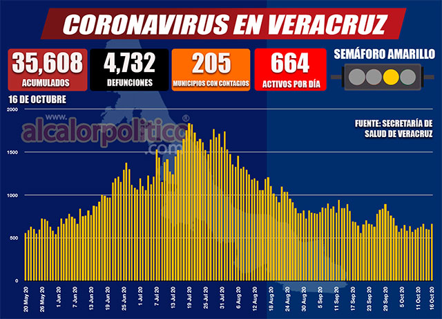 La Secretaría de Salud de Veracruz reporta hasta este viernes el fallecimiento de 4 mil 739 veracruzanos a causa del COVID-19, es decir, 47 más que los informados ayer jueves. Los decesos han ocurrido en 172 de los 212 municipios de la entidad.