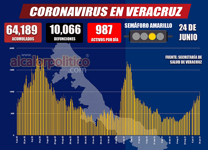 Al corte de las 19:00 horas, la Secretaría de Salud (SS) informa que son 64 mil 189 (+254 nuevos) los casos confirmados de COVID-19 en la entidad, de 148 mil 362 eventos analizados.