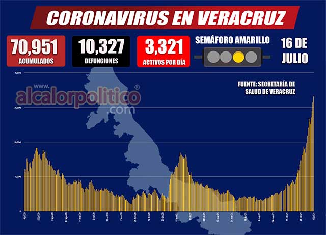 Veracruz registró 502 contagios y 35 muertes por COVID de jueves para viernes