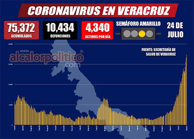 En total se han contagiado 75 mil 372 veracruzanos y fallecido 10 mil 434