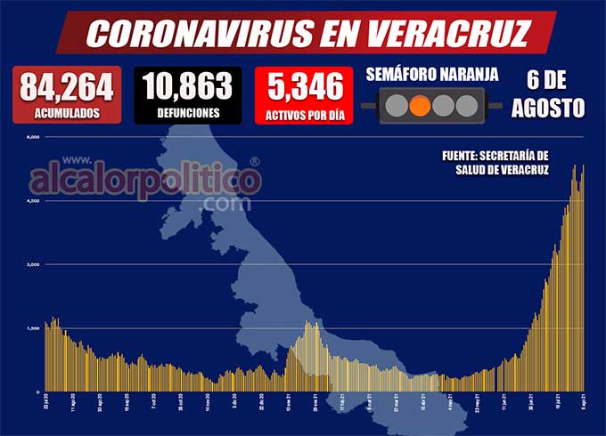 Al corte de las 19:00 horas, la Secretaría de Salud (SS) reporta que son 84 mil 264 (+886 nuevos) los casos confirmados de COVID-19 en la entidad, de 188 mil 001 eventos analizados.